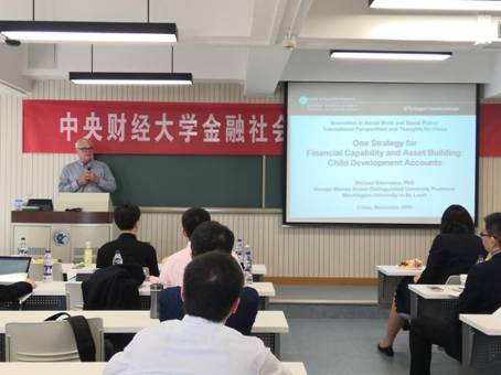 本次沙龙由美国圣路易斯华盛顿大学布朗社会工作学院杰出教授Michael Sherraden主讲。来自报告题目为《One Key Strategy for Financial Capability andAsset Building: Child Development Accounts》。讲座由社会学系胡洋副教授主持,李国武、丁志宏、方舒、樊欢欢等本学院老师以及来自北京大学、清华大学、永利官网、中国社科院大学、中国青年政治学院、中国劳动关系学院、北京城市学院的多名师生参加。